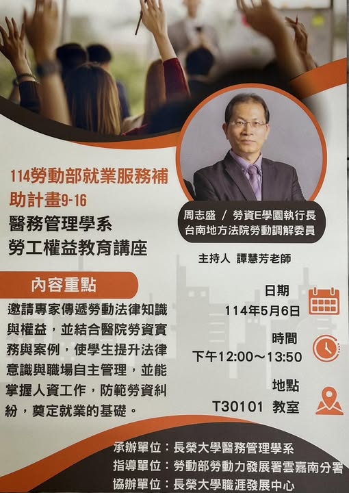 長榮大學醫務管理學系勞工權益教育講座